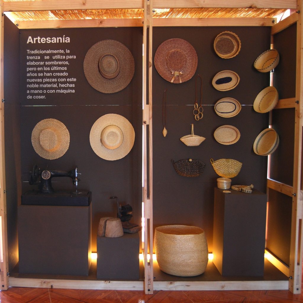 Cada módulo contiene elementos que son parte del universo y del modo de vida que representa el oficio. La colección expuesta se compone de piezas elaboradas por las artesanas trenzadoras, donaciones y préstamos de objetos tradicionales asociados al oficio.