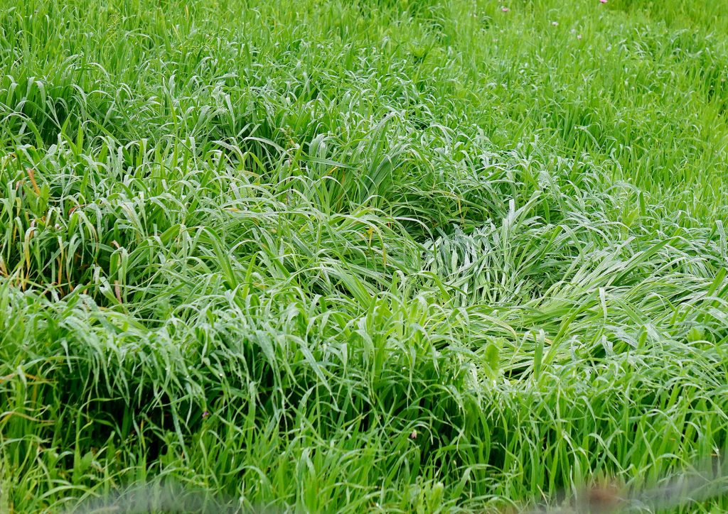 A veces el trigo se cae, entonces es necesario cortar las puntas caídas, para que crezca recto y así poder trenzarlo.