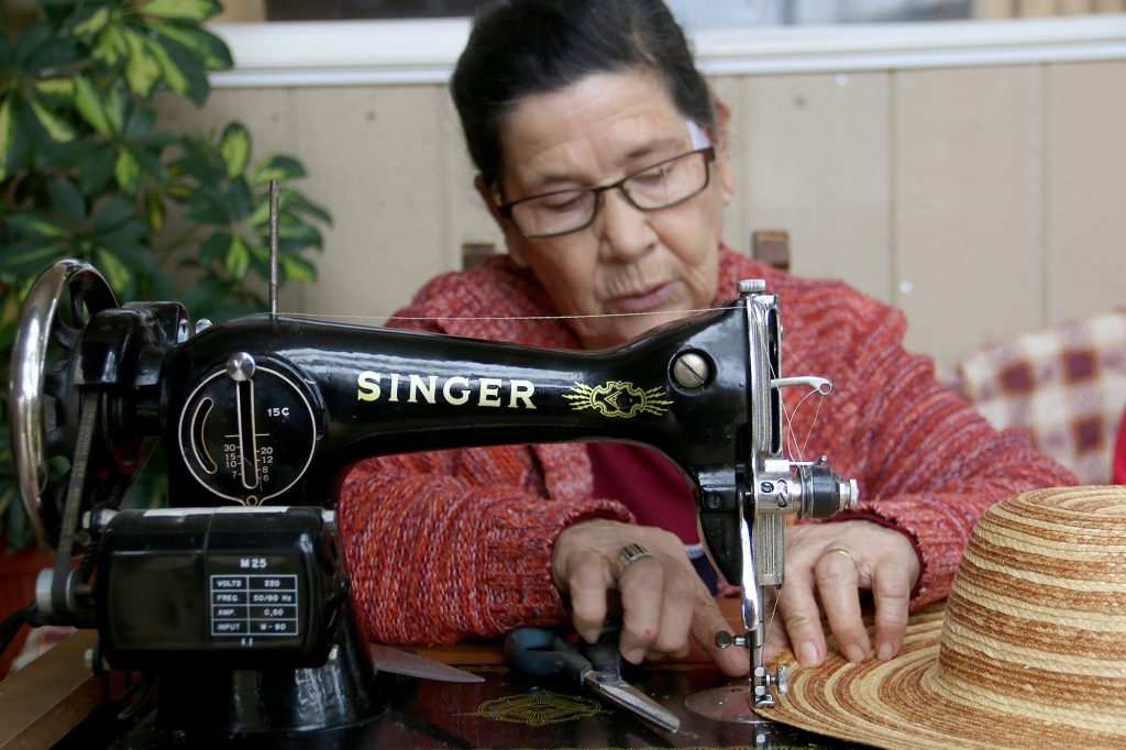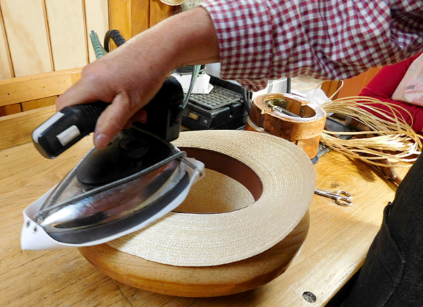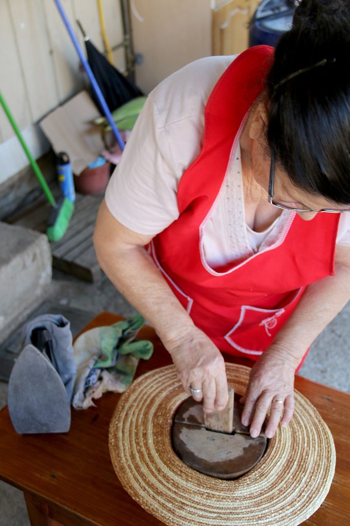 A medida que la costura va avanzando, el sombrero se va probando sobre una horma para dar la costura con la talla y forma determinada por el chupallero.