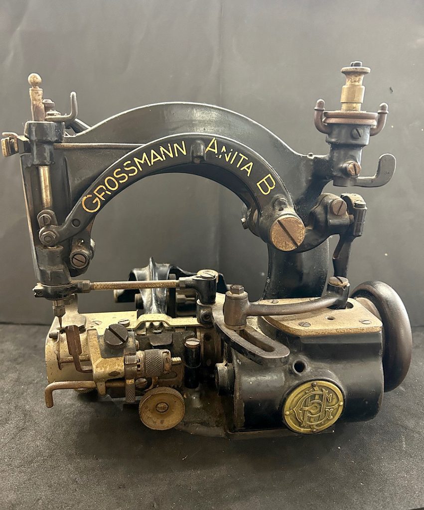 Lo que destaca en el uso de las máquinas de coser para la confección de sombreros es la ausencia de un cabezal que sobresalga, lo que permite dar forma al sombrero sin que la copa se vea obstaculizada por este.