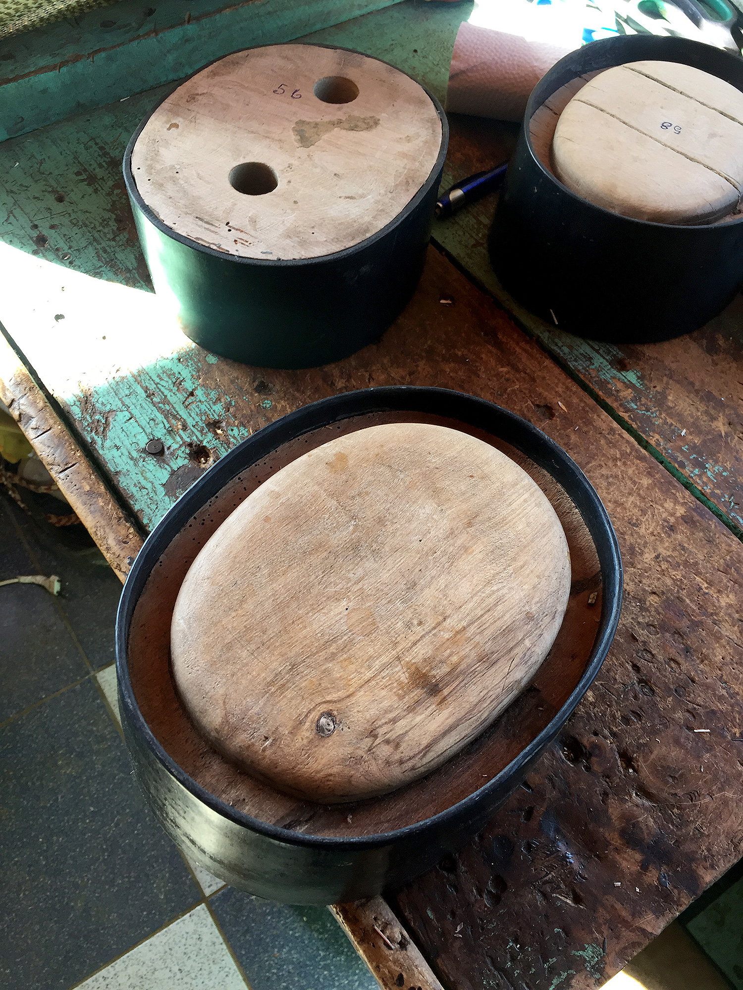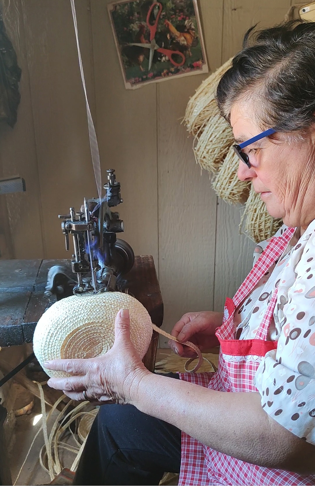 A medida que la costura va avanzando, el sombrero se va probando sobre una horma para dar la costura con la talla y forma determinada por el chupallero.