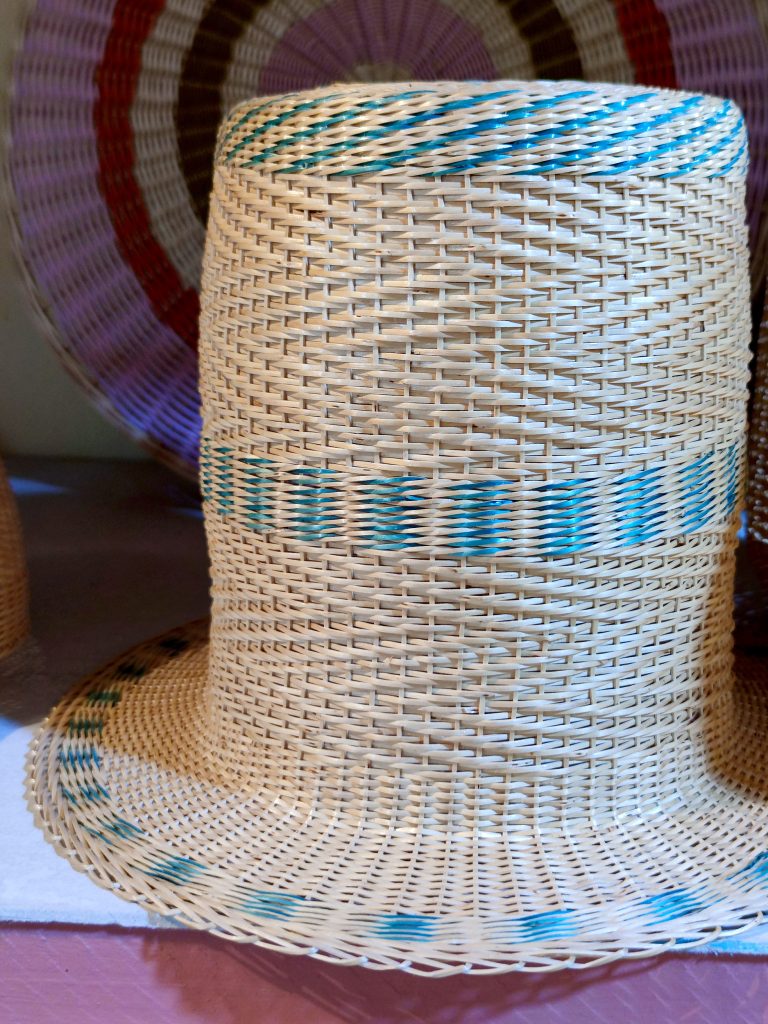 Conversando con don Segundo mientras teje una pantalla.Sombrero o pantalla?Finísimo sombrero en mimbre.Sombrero en mimbre.Sombrero de inspiración polaca.Felices!